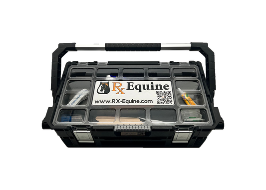 At Rx Equine, we understand the special bond between horse owners and their animals. The Rx Equine First Aid Box is designed to provide horse owners with everything they need to handle an urgent matter. Filled with essential medical supplies, the Rx Equine First Aid Box can help horse owners respond quickly and effectively in case of an injury or illness and have peace of mind knowing that they are well-prepared to handle any urgent matter until a veterinarian can arrive.